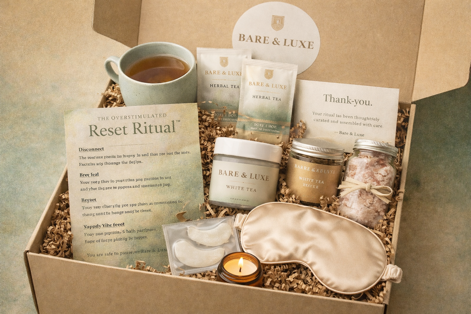 You carry responsibilities, deadlines, notifications, and expectations — often without pause.Bare & Luxe was created to help overstimulated women slow down, reset, and return to themselves.